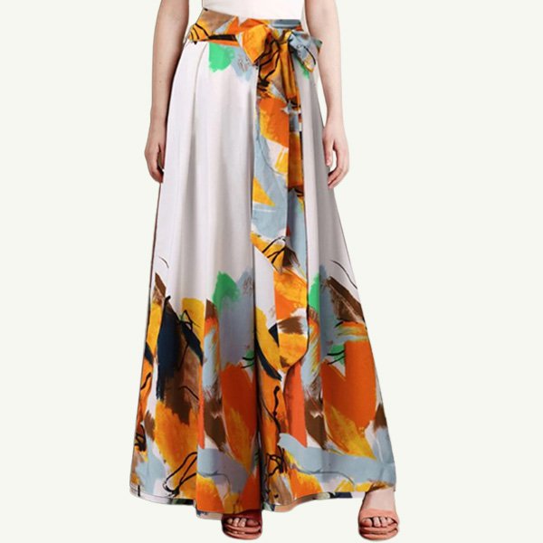 Printed casual patchwork bow wide-leg casual pants