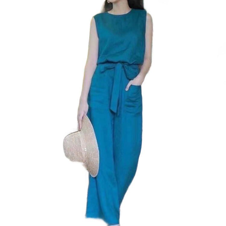 High waist sleeveless siamese pants